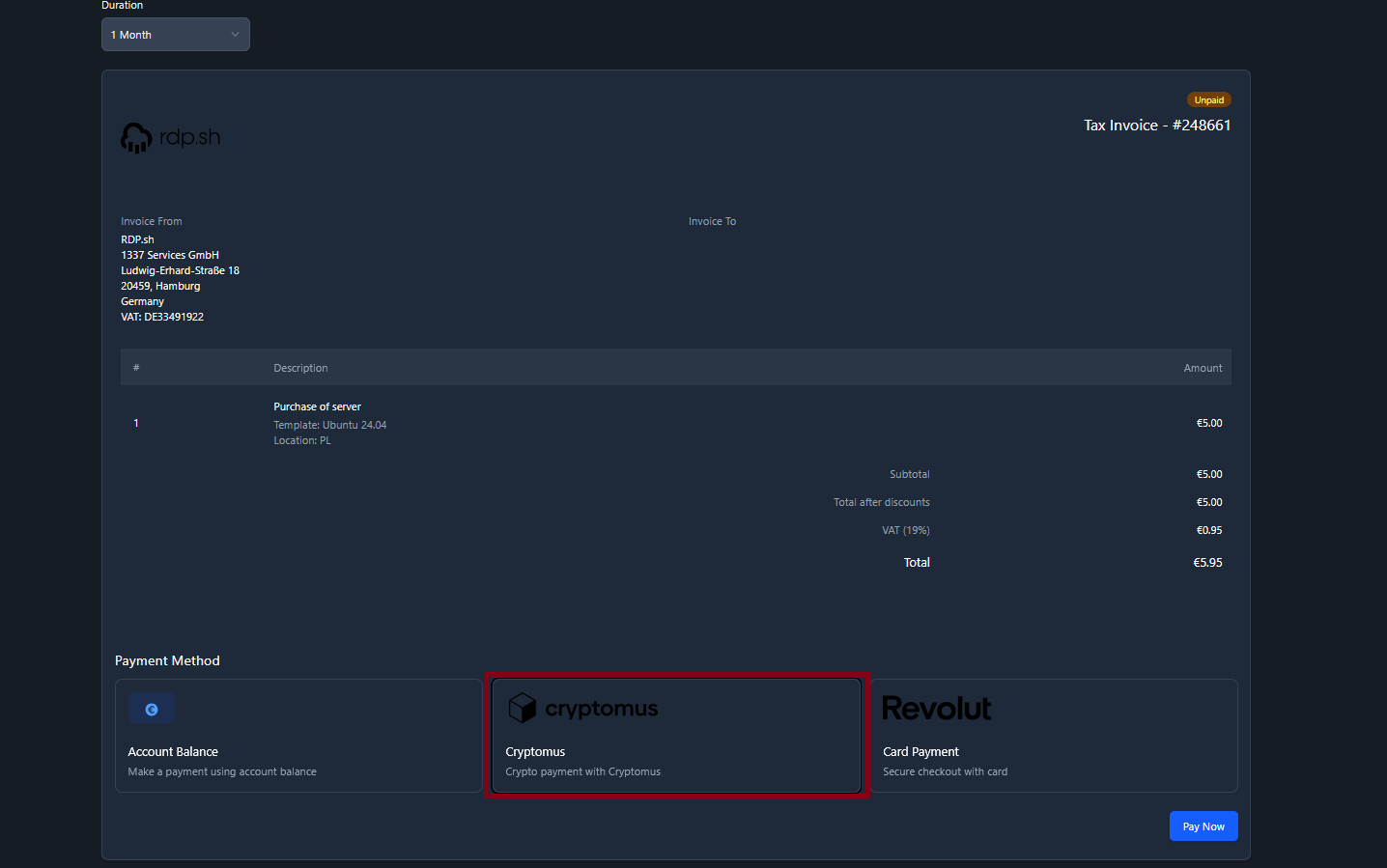 قدم اول سرور مجازی مورد نظر خود را از سایت خریداری کنید سیستم عامل پیشنهادی : Ubuntu 24 نکته: چون در ایران ویزا کارت و حساب های بین المللی تحریم هستند برای راحتی شما عزیزان درگاه کریپتو نیز موجود هستابتدا کشور مد نظر خود را انتخاب کنید کشور های هلند ,امریکا و لهستان در سایت موجود هستند