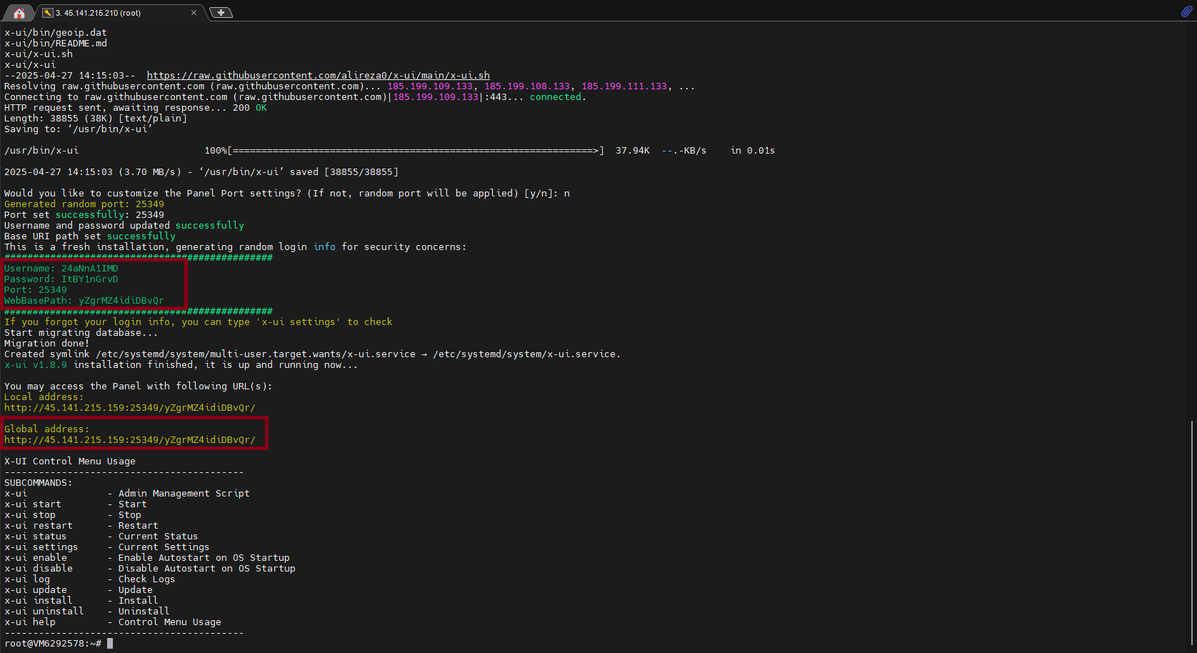 در مرحله بعد اسکریپت نصب پنل را در سرور اجرا کنید