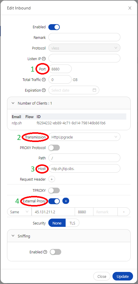 - ترنزمیشن باید روی آپگرید باشد طبق تصویر که بتوانیم بدون نیاز به ایپی تمیز هم از وی پی ان استفاده کنیم